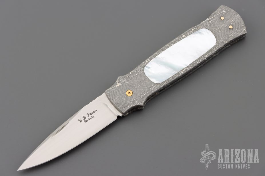 W.D. Pease has been a full-time custom knife maker since 1978 after joining the Knife Makers Guild in 1976. Since 1969, W.D. has been creating these unique masterpieces but has been drawn almost exclusively to folders due to the challenge in making them and for their demand. From stainless steel and Damascus blades to beautiful pearl, stag and bighorn sheep handles, his knifes are among the finest around.