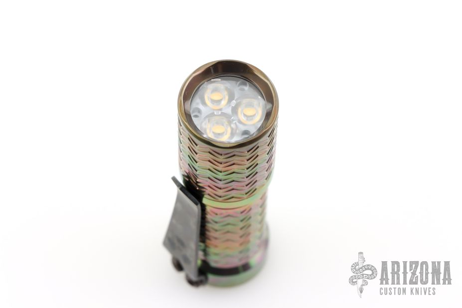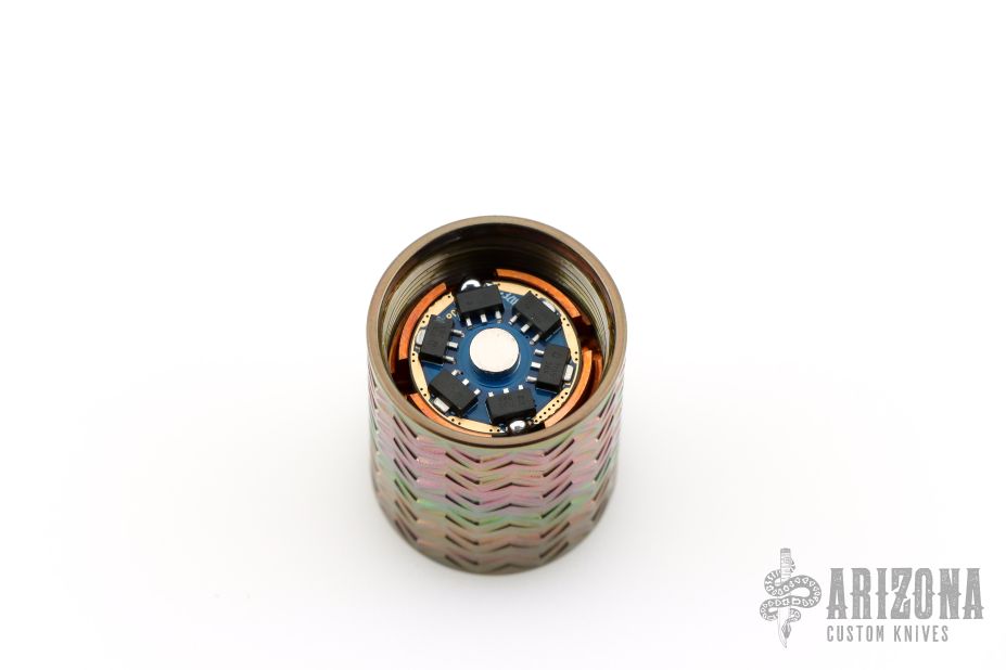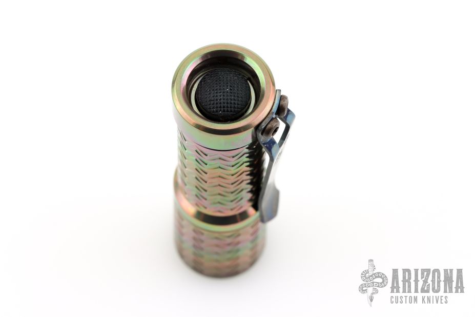 This Trident by Hanko Machine Works is made from titanium. It is Prism anodized, has Steel Flame titanium clip. Comes with a Mommhanks case. Excellent Condition.