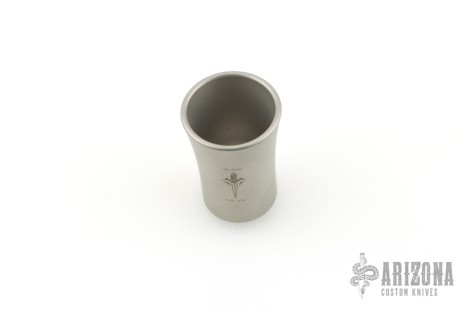 Stainless steel shot glass with Marfione Dagger Logo and #074. Dated 06/2014. Excellent condition. Comes with original box.