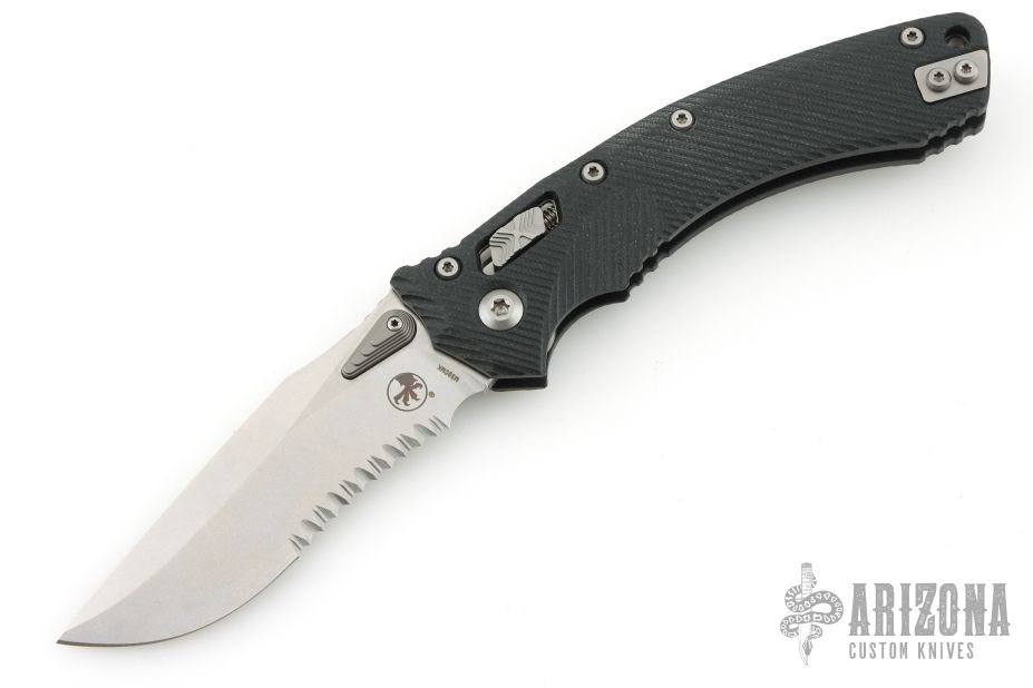 The Amphibian is a true Marfione classic dating back over 20 years. It's from a bygone time when Microtech Knives could be both automatics and manuals...in one. What we have here is the manual version incorporating Tony's own RAM-LOK design with a reversible pocket clip and dual thumb studs for a completely ambidextrous knife that sacrifices nothing in any way. It features the proprietary Bohler M390MK blade steel only available from Microtech Knives. The knife is similar to the MSI Microtech Standard issue in terms of size but when it comes to style, there is no comparison. The Amphibian is one of the coolest tactical knife designs ever and we're glad to see it back and available to the masses!