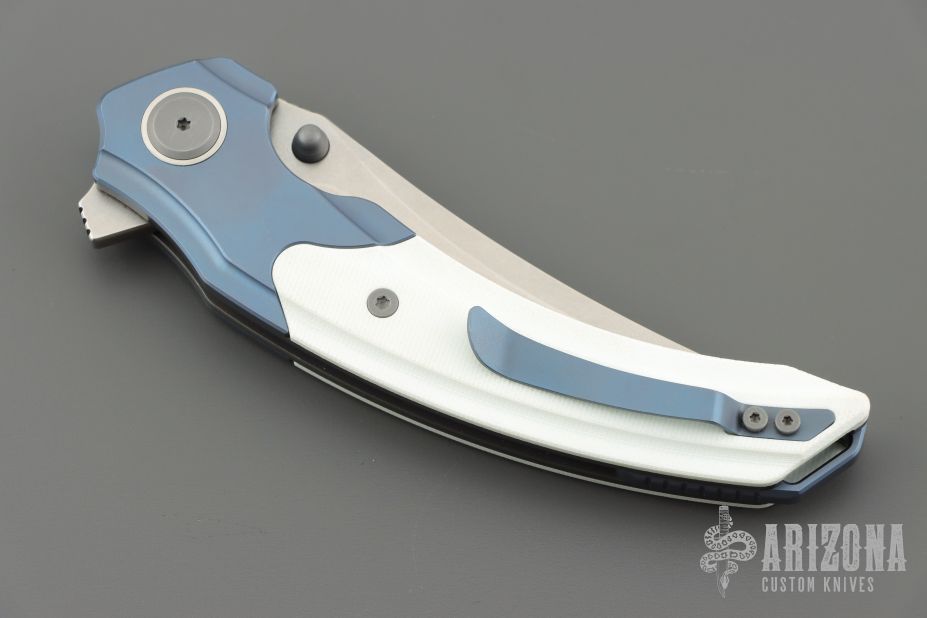 - Trailing point blade made from Bohler M390 with a stonewash finish.