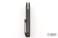 This Tirant Front Flipper by Suprlativ features a satin finished blade with notched front flipper. The handle has a black PVD stonewashed titanium frame with Mars Valley fat carbon covers, black PVD titanium tip up clip.  Includes the original box with extra hardware. Excellent Condition.