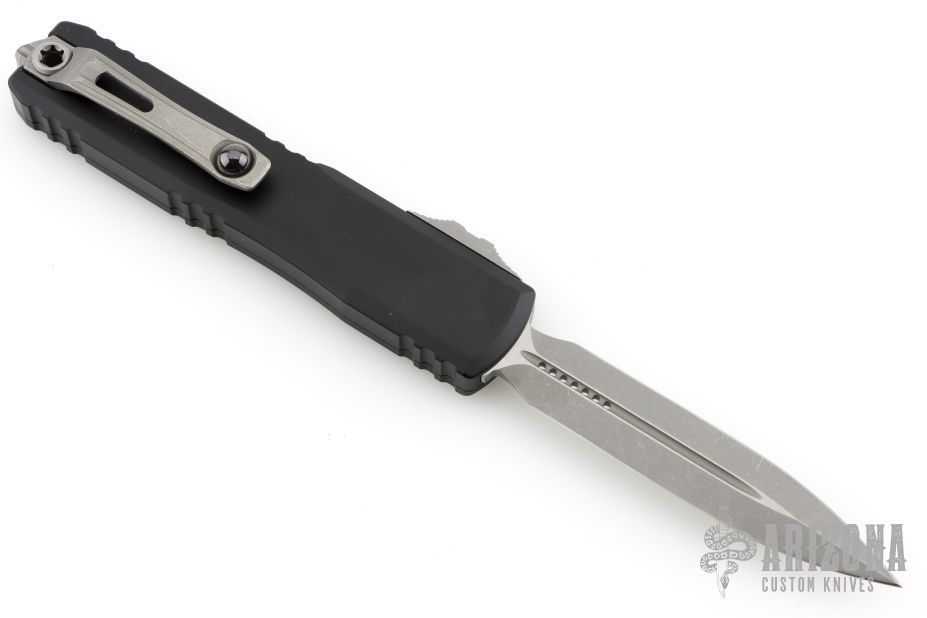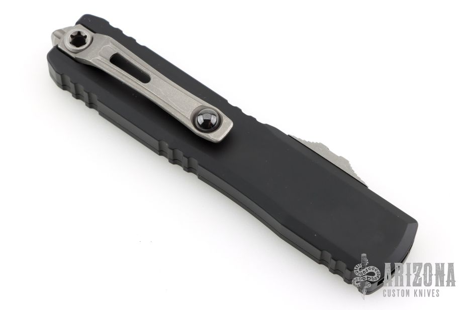 The new Ultratech further distinguishes itself from its predecessor with improved gimping, a slightly wider handle, a slightly longer and wider blade, a lower-profile glass breaker that's integrated into the handle, a wider thumb slide, a titanium pocket clip with a silica carbide ball, and Torx hardware. As with Microtech's other Gen III OTFs, a lanyard hole runs through the large base screw that secures the pocket clip, and the pocket clip is reversible for left-handed users. The knife's blade and handle thickness match that of the former iteration.
