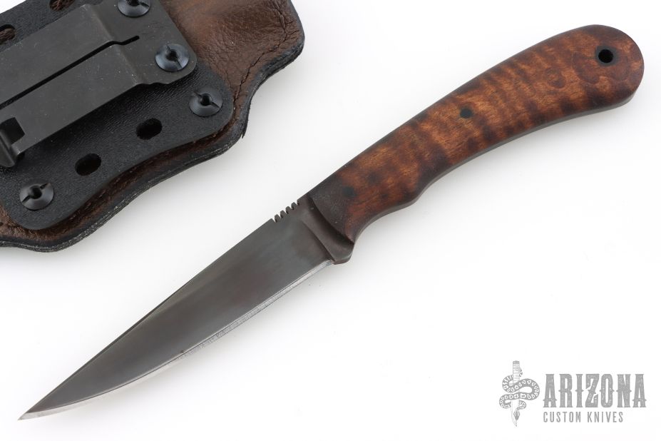 - Leather covered Kydex sheath with multiple carry options can be purchased as a secondary sheath option.