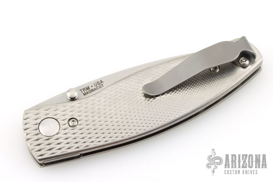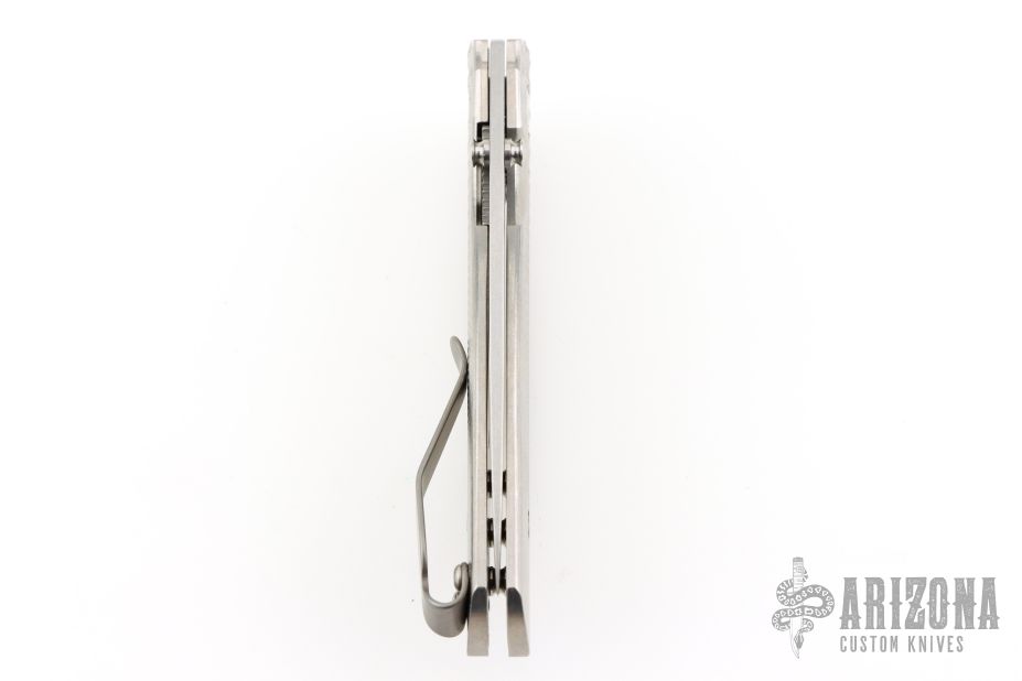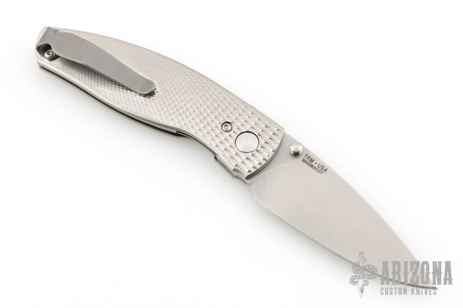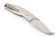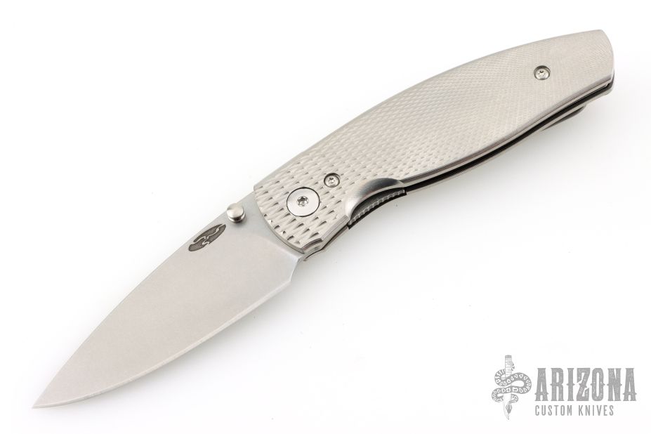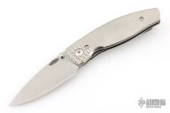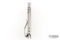 This Neutron Linerlock by Three Rivers features a stonewash finished blade with dual thumbstuds. The handle has milled titanium scales, titanium liner with a titanium tip up reversible clip. Nice detent, lockup and blade seating. Comes with original box and papers. Excellent condition.