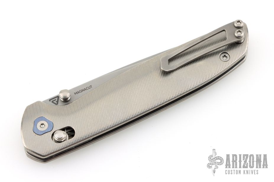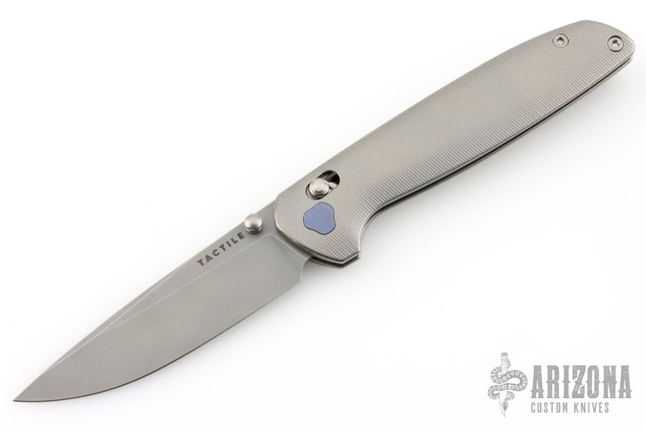 This Maverick by Tactile Knife is a Richard Rogers design with a stonewashed blade, milled and stonewashed titanium frame with anodized titanium pivot and barrel spacers, tip up titanium clip. Comes with original box and COA. Has a couple light scuffs on the clip. Otherwise Excellent condition.