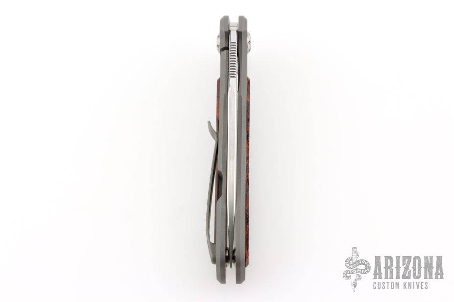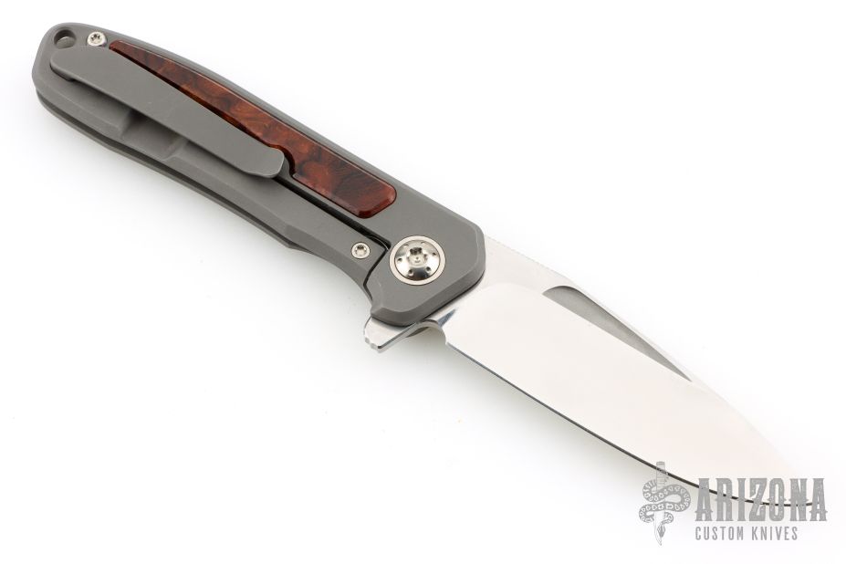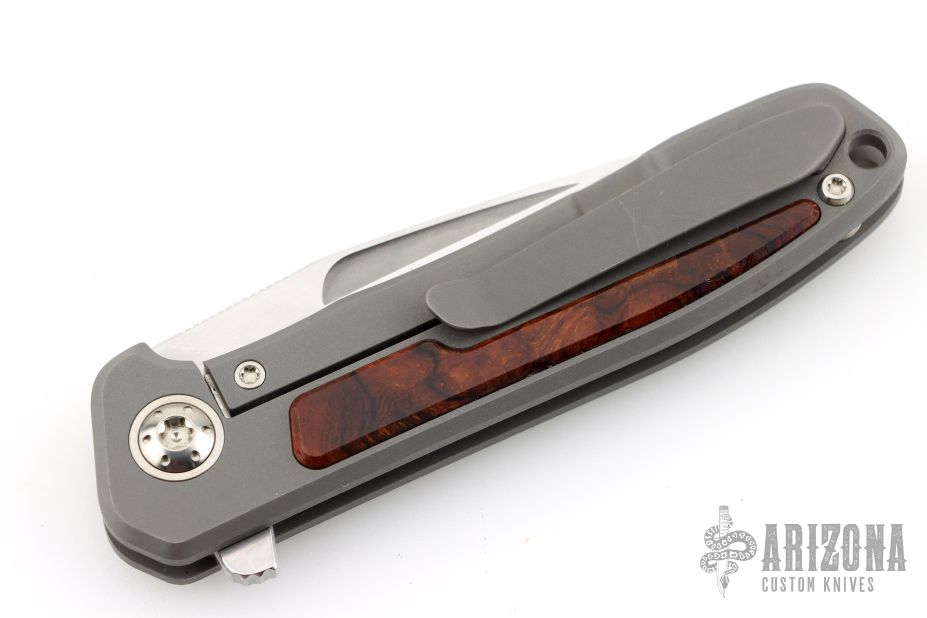 Arno Bernard's iMamba Frame Lock Flipper is a EDC designed for high performance and hard use. The blade is hard ground satin finished blade. Ball bearing pivot. The handle is bead blasted titanium with Ironwood inlays, bead blast finished titanium tip up clip. Comes with original box, lanyard and COA. Has a couple light scratches on the clip. Excellent condition otherwise.