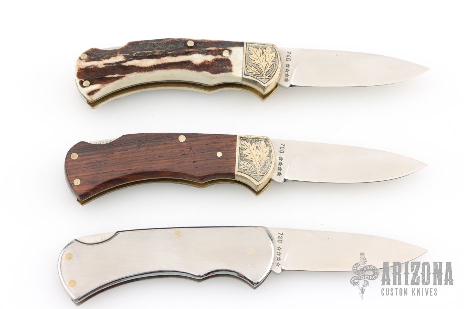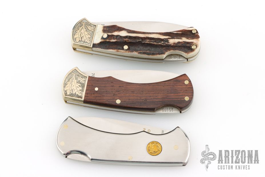 Set of 3 4 Star Lockbacks - All #20 - Stag/Wood/Stainless Steel - Engraved