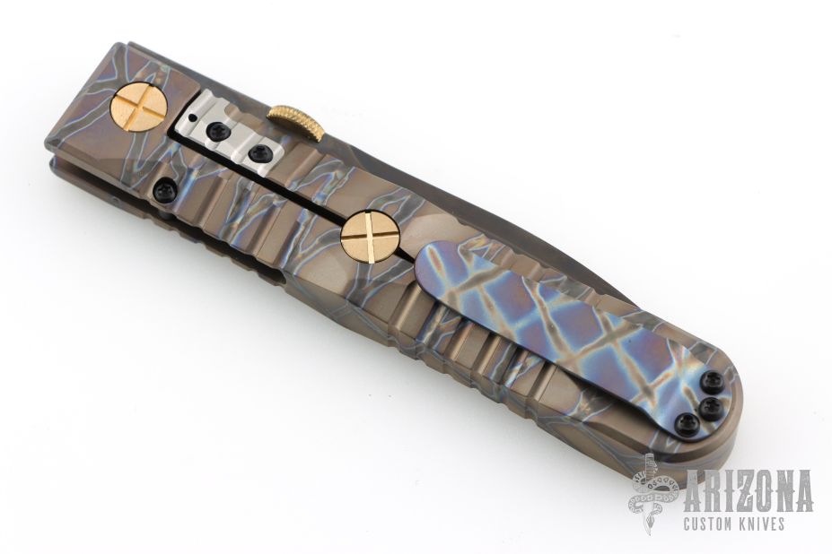 • Handle: Integral titanium handle (one piece handle) - 4 3/4" length x 7/8" wide - Tiger Stripe finish