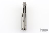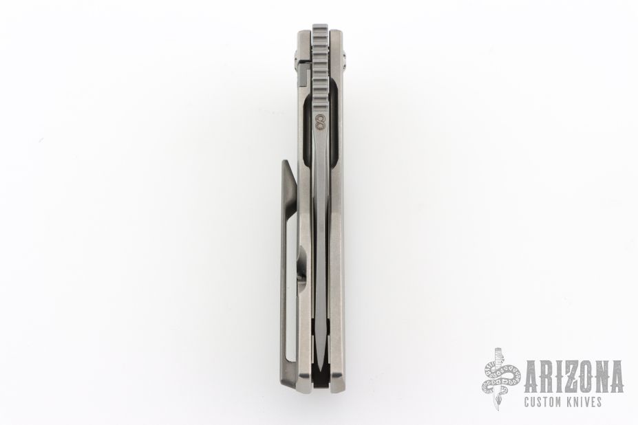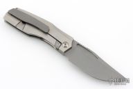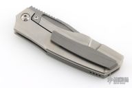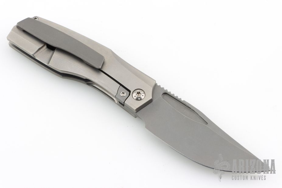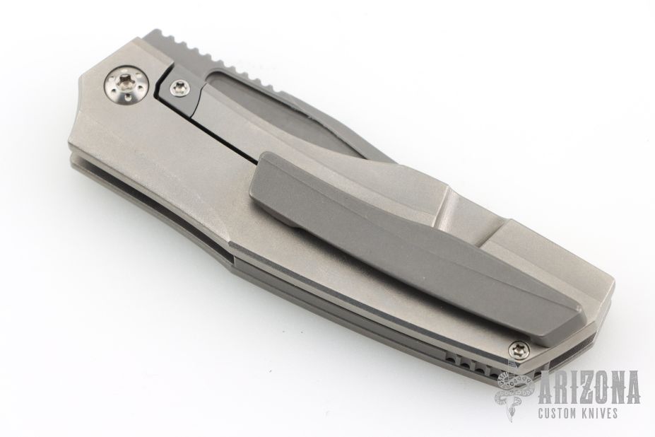 This Protean by Prince Customs is #214. It has an acid wash blade with thumb groove and notched thumbrest. The handle has a bead blast finished, milled titanium frame with matching tip up clip and floating backspacer. Stainless lockface insert. Comes with original box and COA dated 11/2024. Has a few light scuffs and scratches, otherwise great condition.