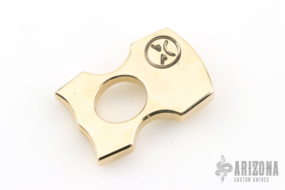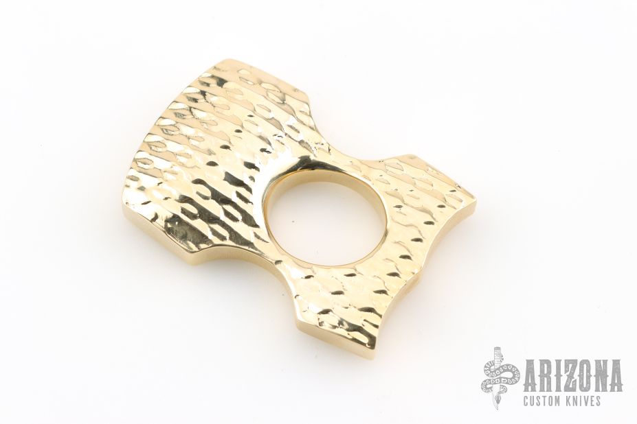 This Knuckle by MG Customs is made of polished and textured brass, .393" thick, with a palm-swell measuring .53". Comes in a leather pouch. New from maker.