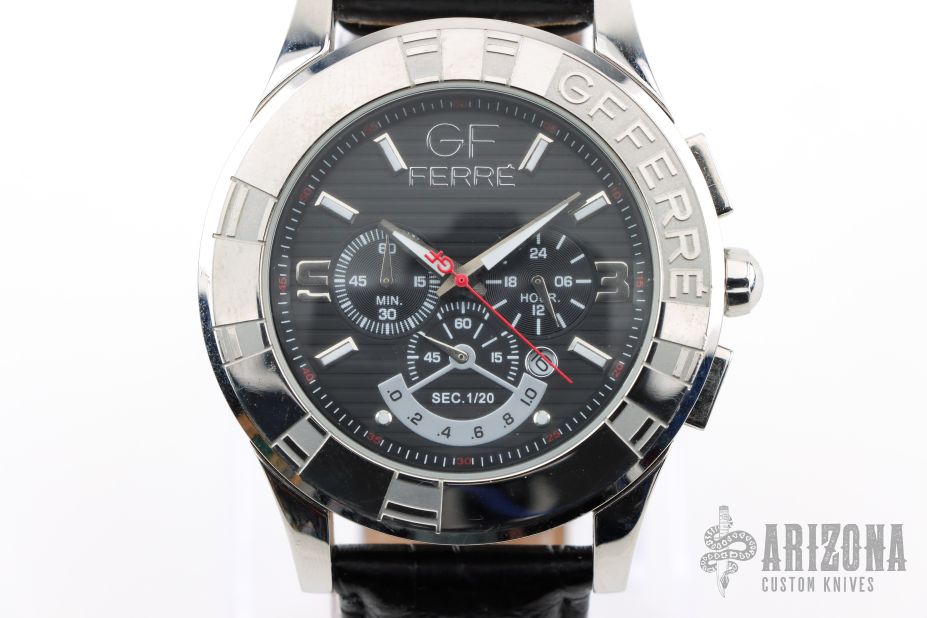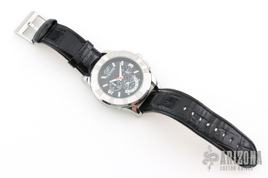 GF9607J Chronograph Watch. Comes with original box. Original black leather strap. 48mm bezel. 24mm strap. Has some scratches, otherwise good condition. Needs a new battery.