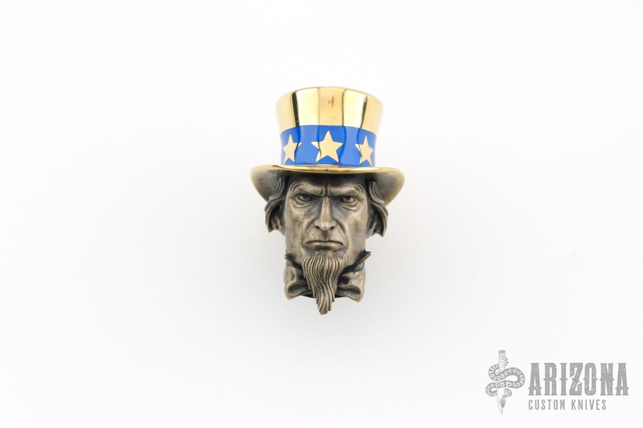Uncle Sam Bead by Bony Buddy featuring brass and bronze construction. Comes with COA. Excellent condition.