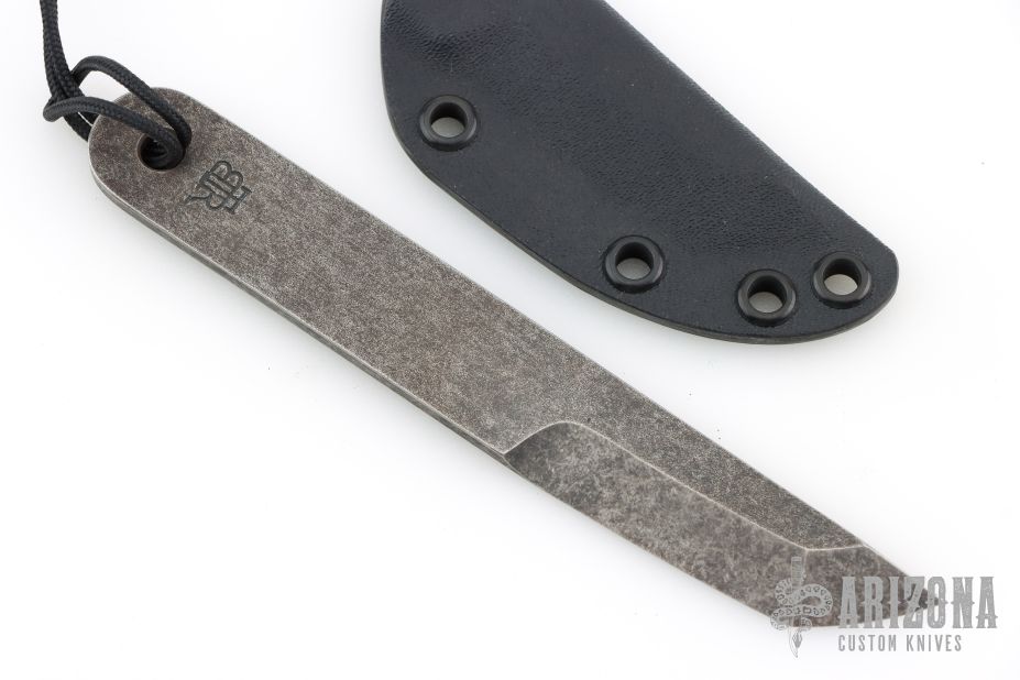 This OSS Kwaiken by Ben Tendick features a chisel ground tanto edged blade, .149" blade stock and .833" blade depth, integral construction. Acid tumbled finished. Comes with kydex sheath and COA dated 4-27-17. Excellent condition.