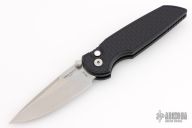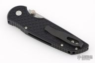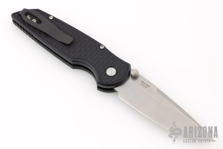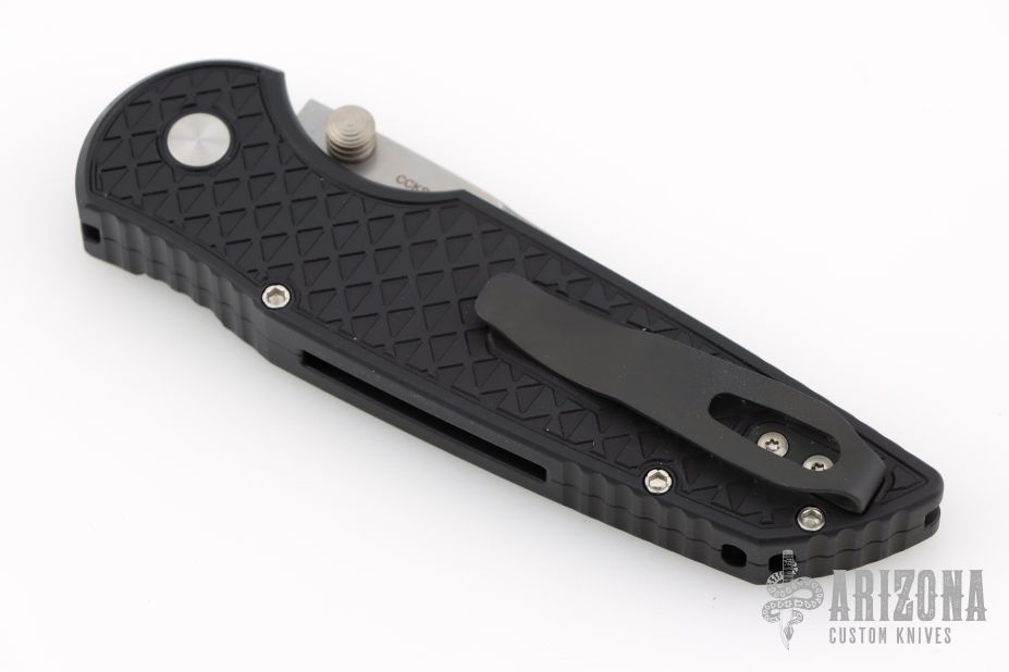 This Integrity Folder is a well made knife with great fit and finish, just what you expect from Pro-Tech. This Integrity folding knife features a S35-VN stainless steel blade with stonewashed finish, a very nice touch. The handle has a Relic textured black aluminum handle with gold lip pearl button and tip up black stainless steel clip. Comes with original box and papers. Excellent condition.