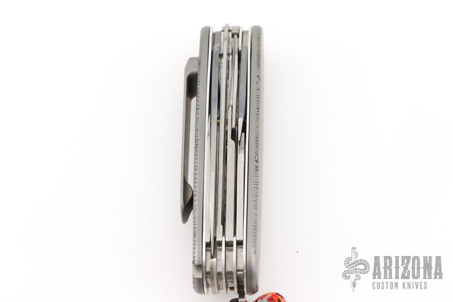 This SPD Edition features a detailed, laser etched "Wave" pattern. Precision machined titanium billet replacement scales for the standard 91mm style "Swiss Army Knife". These high grade premium scales are press fit permanent replacements for the factory plastic scales. Fully contoured on a CNC these titanium scales will have the similar shaping and feel of the factory plastic scales, but made with titanium as a premium upgrade mod.Our Ti-SAK scales also have the factory pen slot, toothpick slot, tweezer slot, and the stick pin slot. Our matched billet titanium pocket clip uses the standard 3 screw pattern so the user can swap out the clip and personalize with other aftermarket pocket clips such as the Dragontail pocket clips from our friends over at Steel Flame and others, if so desired.