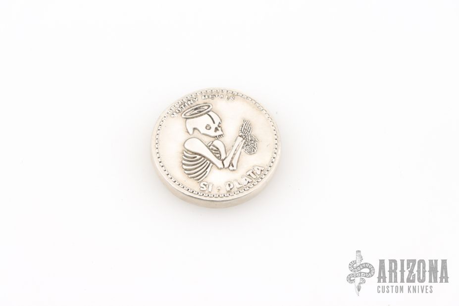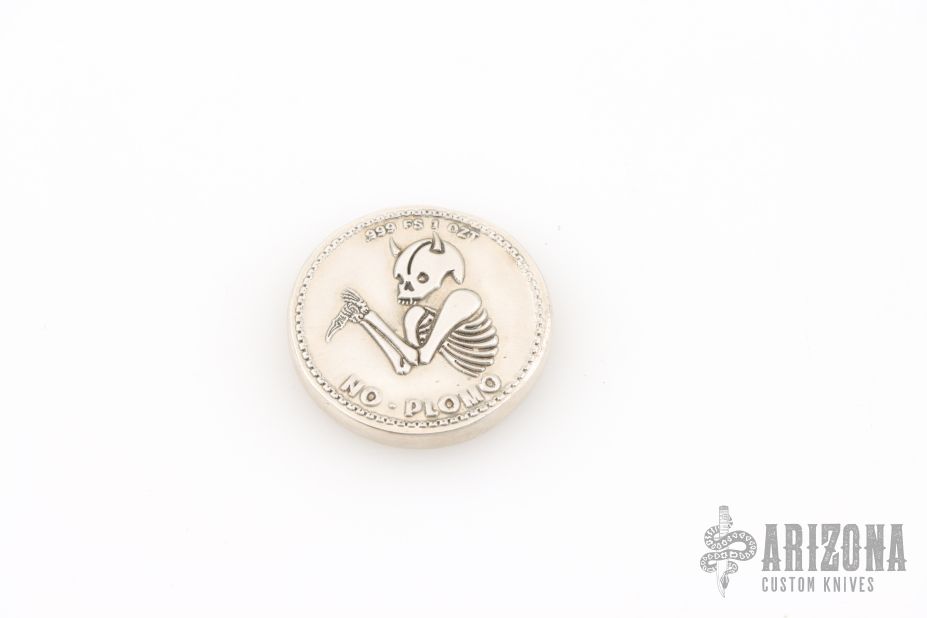 Sneakreaper angel/devil adorned on both sides, produced by Mutiny Metals.