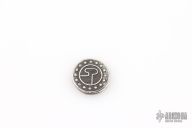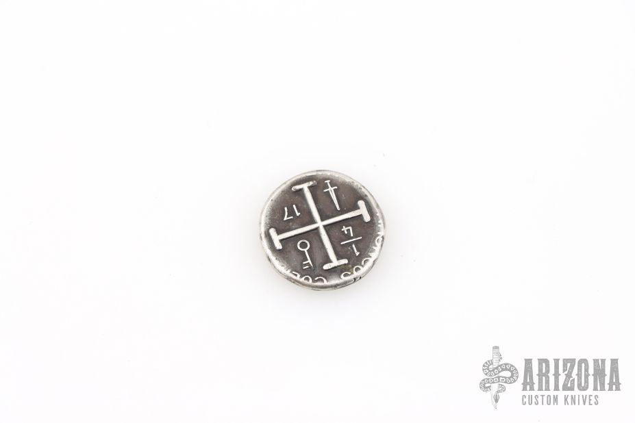 This silver coin by Serge Panchenko features full .999 silver construction with Serge's Logo on one side, and key/sword/numerals on the other. This item as die struck, with dies that Serge machined himself. Cool piece! Comes in a soft pouch. Excellent condition.
