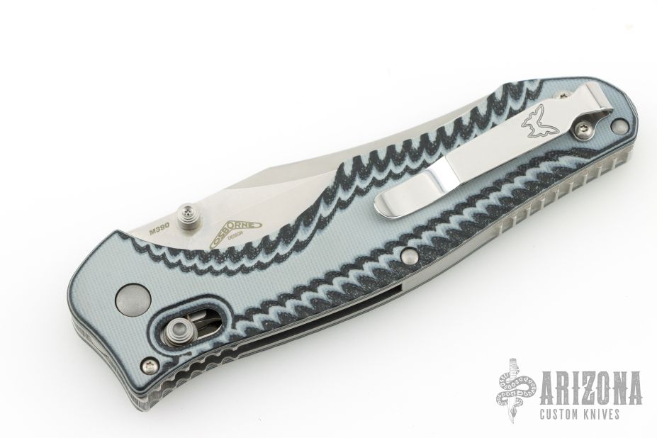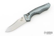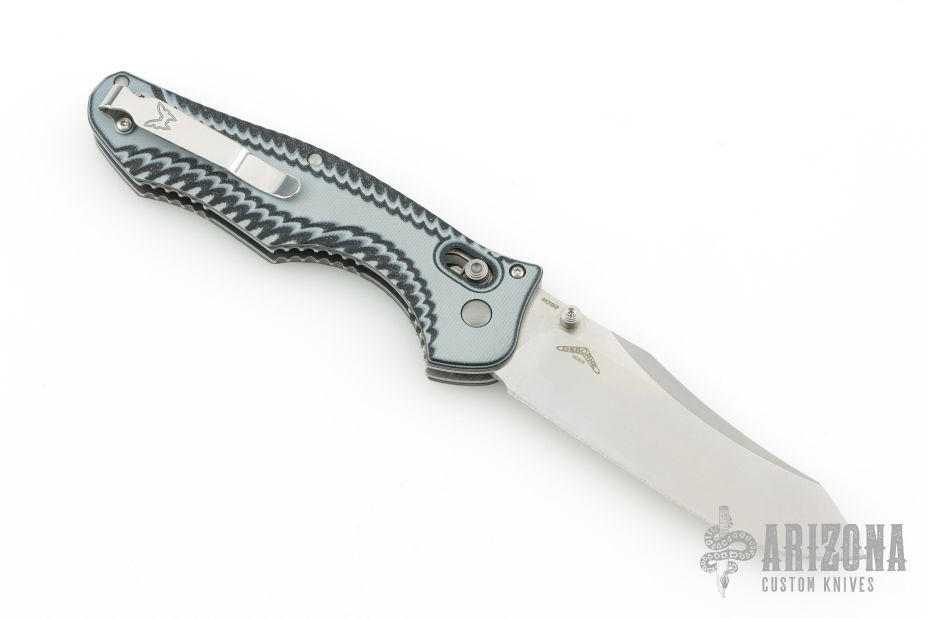 This Benchmade 810 Contego has the Axis locking mechanism. Stonewash finished blade with dual thumbstuds. Blue/grey milled G10 handle with stainless steel liners and backspacer, tip up carry stainless steel clip. Perfect lockup and strong detent. Comes with original box, pouch, and papers, excellent condition.