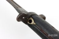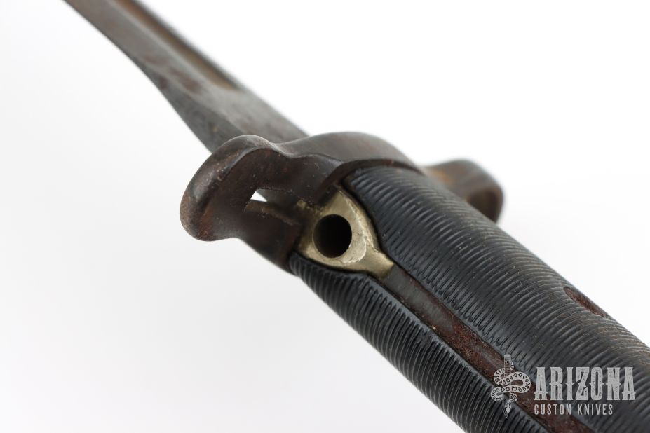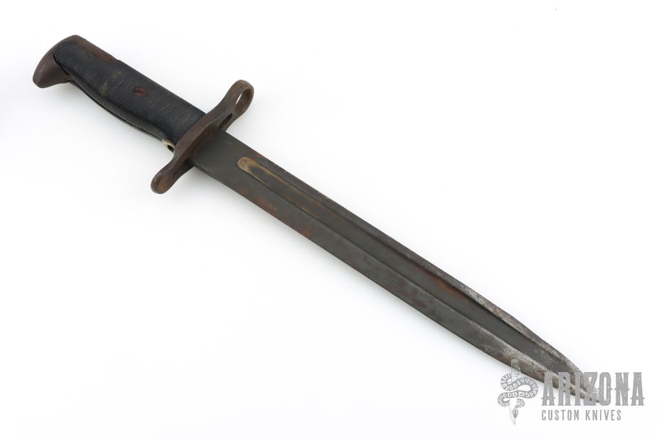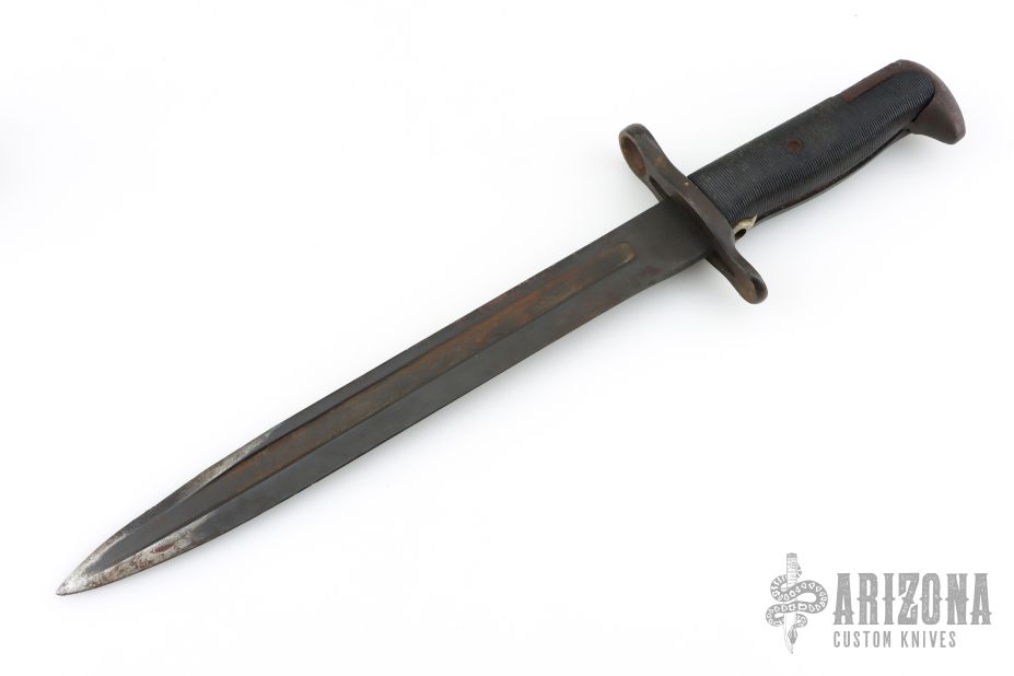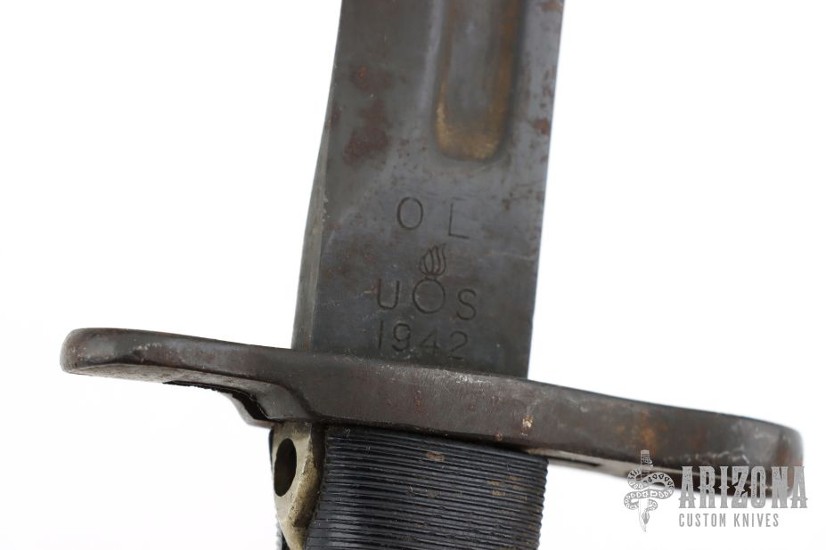 This WWII 16" 1942 US M1 Garand Bayonet. Has patina, scuffs and scratches, all of which is to be expected. Button Latch & spring is missing. Otherwise the bayonet is in good condition for its age.