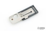 In its original form, the Squarehead featured a one-piece handle machined from solid titanium—including its integral back strap and LinerLock-style lock mechanism. Its single-beveled, chisel-ground blade was crafted from CPM S30V stainless steel to provide excellent edge geometry and strength, while allowing the cutting edge to nest safely against the inside of the handle scale.