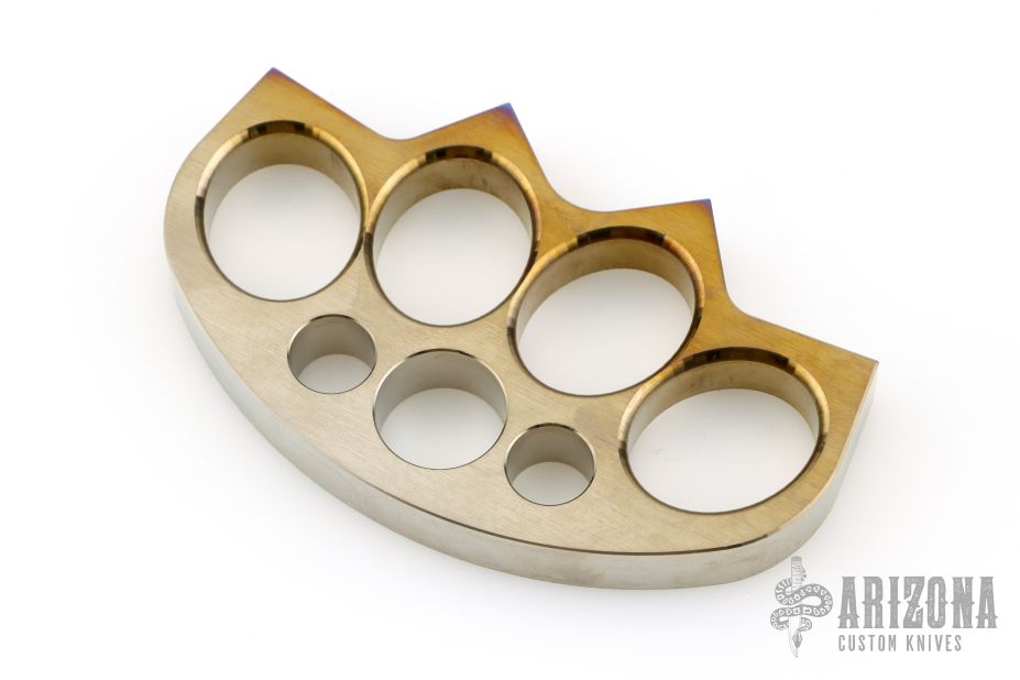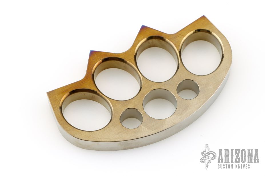 This set of Crown Knuckles by Laci Szabo features 0.516" satin finished and flame anodized titanium construction. Has a few scratches, otherwise excellent condition. New from maker.