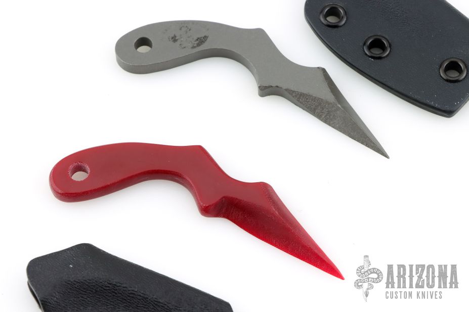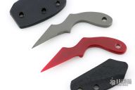 This Baby UUK Laci Szabo is made from G10, and it has a chisel ground blade with a double edge, .263" blade stock and .719" blade depth, integral construction. Includes Kydex neck sheath. Weighs .2 oz. New from maker.