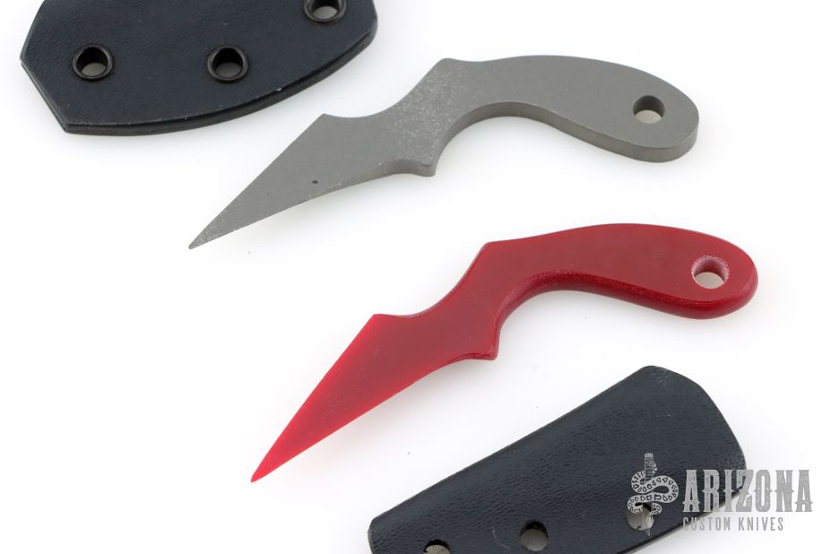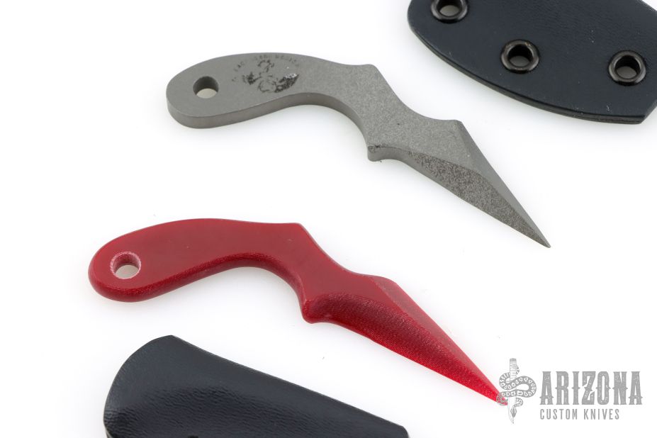 This Baby UUK Laci Szabo is made from G10, and it has a chisel ground blade with a double edge, .263" blade stock and .719" blade depth, integral construction. Includes Kydex neck sheath. Weighs .2 oz. New from maker.