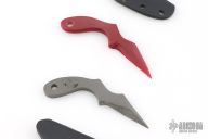 This Baby UUK Laci Szabo is made from G10, and it has a chisel ground blade with a double edge, .263" blade stock and .719" blade depth, integral construction. Includes Kydex neck sheath. Weighs .2 oz. New from maker.