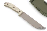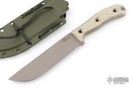 This Desert Patrol by Busse has a desert sage coated blade with .125" blade stock and 1.410" blade depth, full tang construction with canvas micarta scales. Comes with original injection molded sheath. Excellent condition.