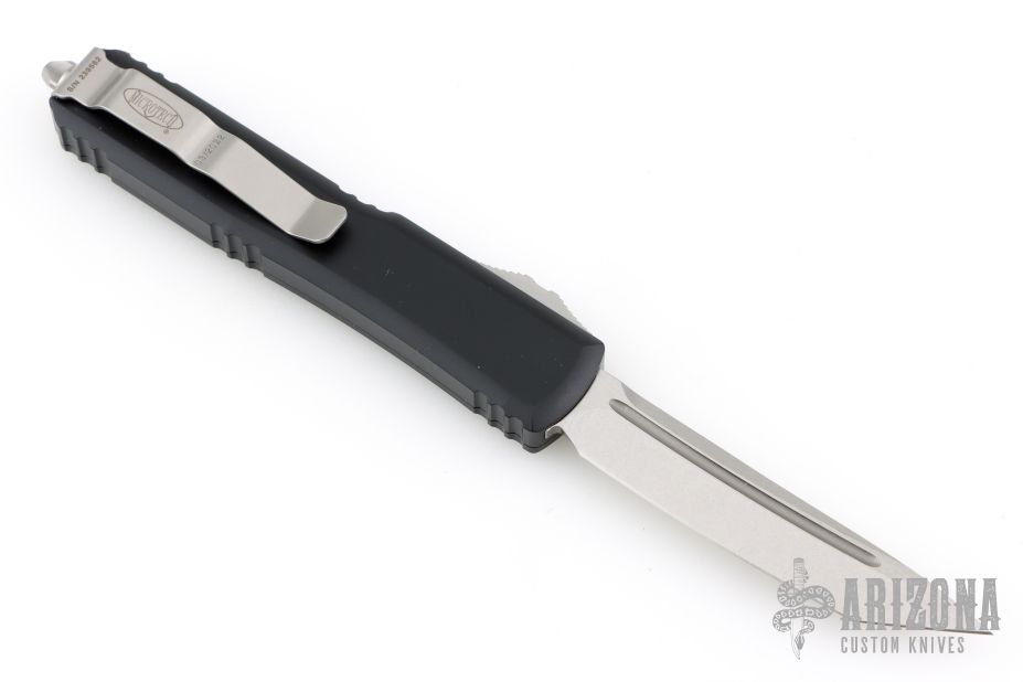 This Ultratech OTF automatic features a T/E stonewashed tanto blade with a standard edge. Stainless steel clip. Glass breaker. Serial number 239562 and dated 03/2022. Comes with original box and papers. Excellent condition.