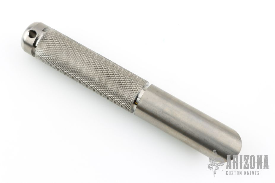 This Titanium Wedge of Doom by Lazi Szabo is 1" in diameter, has a knurled handle and a satin finish. New from maker.