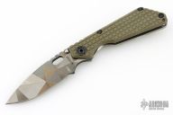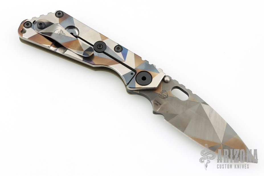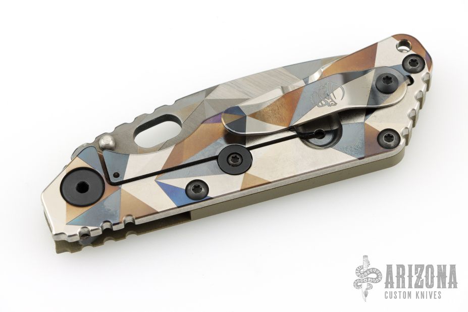 His knife line grew over the following years to include different varieties of fixed blades, all distinctive and many with specialized uses. But constant in all of them was a disregard for convention, and a desire to try new ideas. An example of this was the Ajax – it featured a very wide blade surface clearly designed to inflict damage. It drew on the weapons carried by Roman legionnaires, yet was modern and usable in the 21stCentury battlefield. Mick also worked on his technical skills, always striving to become better at the physical craft. At the 2002 Blade Show, a group of the best tactical knifemakers in the country decided to compete with each other to produce the most innovative and interesting fixed “battle blade” at the show. Mick’s entry, an incredible integral knife made out of ½” titanium stock with a zippered composite blade, gorgeous handles, and integral guard was the unanimous winner, and effectively retired the competition.