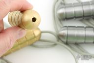 Steel set weighs 18oz, the brass set weighs 19oz.