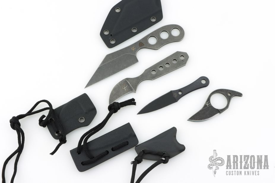 Fred Perrin makes fixed blades and folders of every kind; Forges Damascus steel or uses stock removal techniques. In any case, he always does his own heat treatment and tempering. As far as his background in the martial arts, Fred has spent two years in the French Army Commandos and worked as a bodyguard. He was a national Tae Kwon Do champion and a European full contact stick-fighting champion. He has trained in Kali, and God knows what else. His weapon of choice is the butterfly knife, in which he excels. Aside from being France’s most famous and controversial knife maker and tactical writer, Fred runs a school where he teaches a very unique blend of knife, stick, and empty hand techniques. He is often contracted by France’s elite police units for seminars. He also provides some agencies with custom-made weapons for ballistic testing.