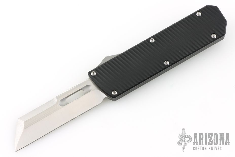 This Pulse OTF Auto by EMP EDC features a satin finished blade with notched thumbrest. The handle is black grooved aluminum with tip down titanium clip. Comes with original box, zippered case and COA dated Sept 2023. Excellent condition.