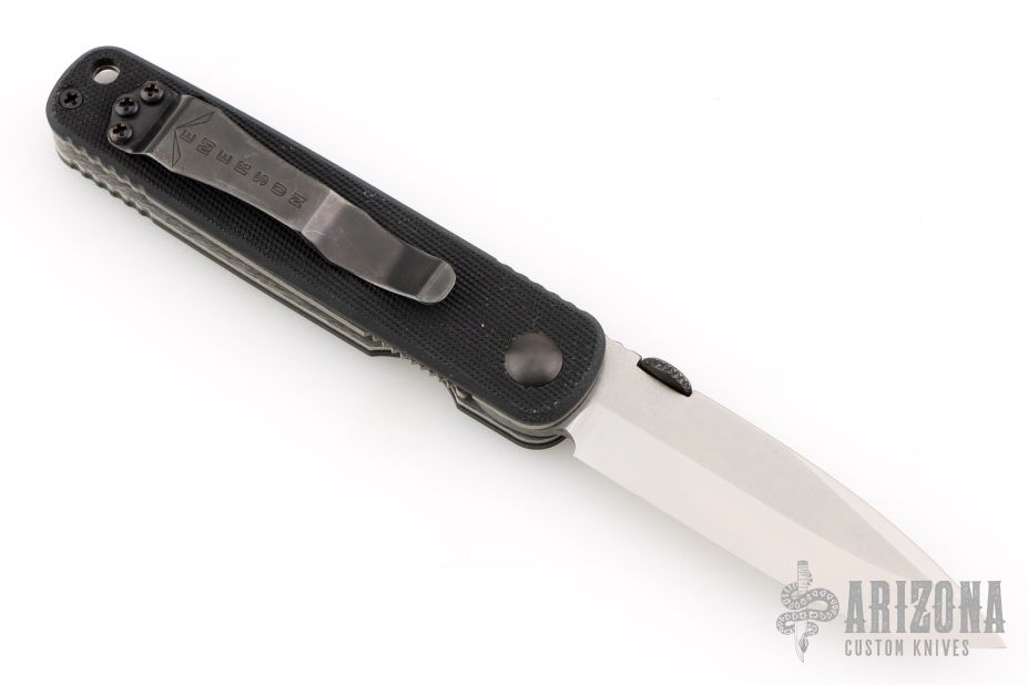 Ernie Emerson says "Symmetry, Grace, and Power. These three words describe the Emerson Model Mini A100 knife perfectly. When I first started making knives, before “Tactical”, I was making this pattern. I liked it then just as much as I like it now. This knife became the archetype from which all of my other designs have evolved . It is the “Father” of all my tactical designs. In fact it might be the “Grandfather” of all tactical knife designs that now exist. It’s simple, it works, and it never gives up. See for yourself." This Mini A-100 BT by Emerson Knives features a stonewashed spear point blade with swedge and knurled thumb disc. The handle is comprised of black G10 scales over titanium liners and black barrel spacers, black coated steel tip up clip and positioned for tip up carry with lanyard hole in pommel.