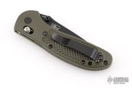 This Griptilian by Benchmade features a black blade with swedge, notched thumbrest and dual thumbstuds. The handle has textured FRN scales with a black stainless tip up pocket clip. The pocket clip can be reversed for right or left tip up carry. The AXIS lock system makes the knife easy to open and easy to close. Comes with a Benchmade nylon sheath. Has a few light scuffs, otherwise excellent condition.