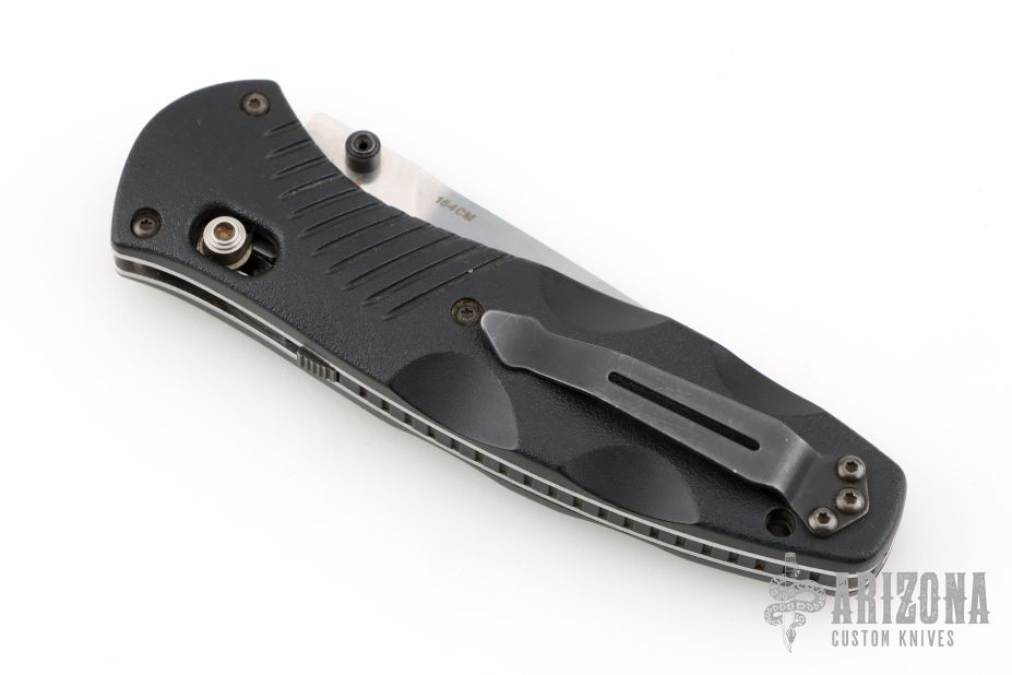 This 580 Barrage from Benchmade features a stonewash finished drop point blade with swedge and dual thumbstuds. The handle is comprised black FRN scales over stainless steel liners and FRN backspacer. This knife also features the AXIS lock mechanism and sliding safety on spine. Has some light scratches, has been sharpened, good user condition. Comes with a Benchmade nylon sheath.