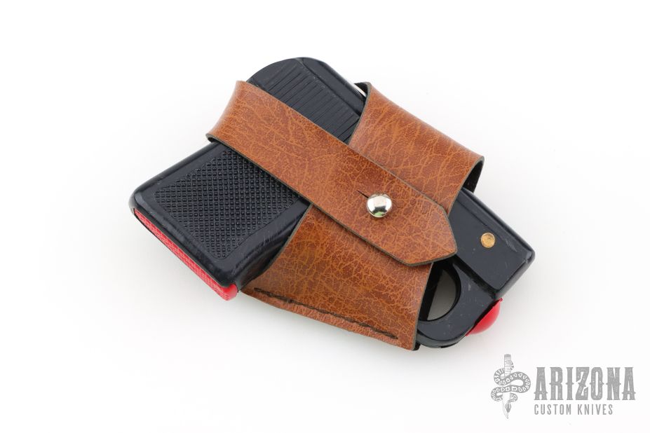 This special automatic knife is a remake of the old Maniago gun-letter opener made in the 50's. The handle is made of black plastic/composite and the blade is made of stainless steel. This knife is not for EDC use, but for collectors who like a piece of Italian knife history or like a letter opener. Has some light scratches, otherwise excellent Condition. Comes with a brown leather holster.