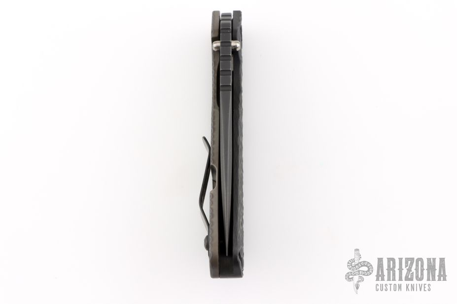 His knife line grew over the following years to include different varieties of fixed blades, all distinctive and many with specialized uses. But constant in all of them was a disregard for convention, and a desire to try new ideas. An example of this was the Ajax – it featured a very wide blade surface clearly designed to inflict damage. It drew on the weapons carried by Roman legionnaires, yet was modern and usable in the 21stCentury battlefield. Mick also worked on his technical skills, always striving to become better at the physical craft. At the 2002 Blade Show, a group of the best tactical knifemakers in the country decided to compete with each other to produce the most innovative and interesting fixed “battle blade” at the show. Mick’s entry, an incredible integral knife made out of ½” titanium stock with a zippered composite blade, gorgeous handles, and integral guard was the unanimous winner, and effectively retired the competition.