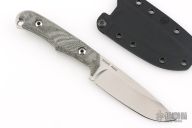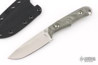 With backpacking hunters and outdoorsmen in mind, the Backpacker is a lightweight knife designed for skinning and utility. A tribute to Chris' original 1980s Backpacker design, the newest iteration echos Chris' original details with modern materials. Its blade provides ample belly and a drop point shape for more control. Its canvas Micarta handles provide comfort without sacrificing agility, though they can be removed for deep cleaning or extra-lightweight hiking. The slim KYDEX® sheath fits snugly with the Backpacker's handles on or off. Razor-sharp and made to last, the Backpacker will work hard from the backcountry to home.