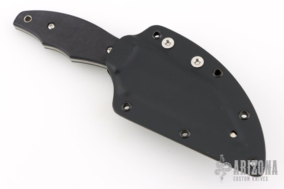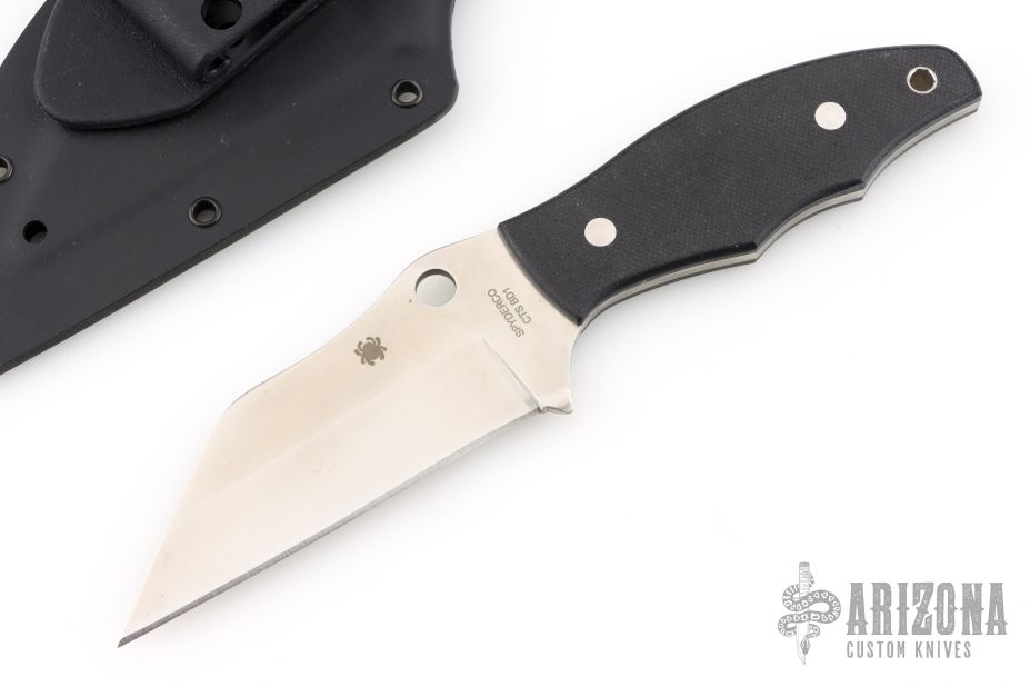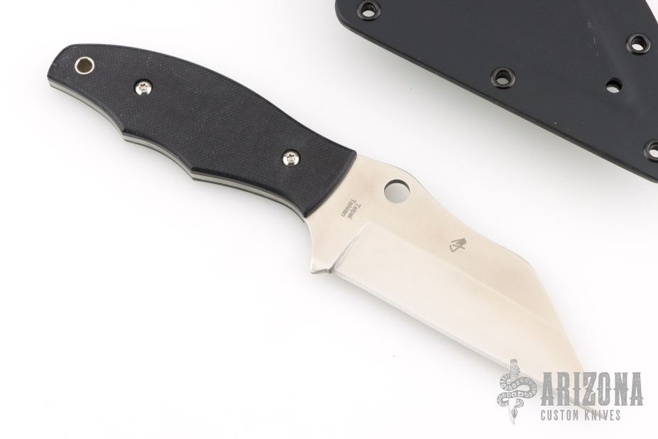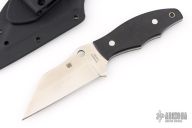 This Ronin II by Spyderco Knives features a satin finished wharncliffe blade with .116" blade stock and 1.523" blade depth, full tang construction. The handle has black G-10 scales with a lanyard hole at the butt. Comes with kydex sheath with belt clip. Excellent condition.