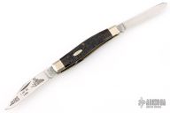 This Stockman by Case Knives features jigged bone covers, double nickel silver bolster all over brass liners. The two blades are mirror polished. Has some light scuffs, scratches, and patina. Great overall condition.