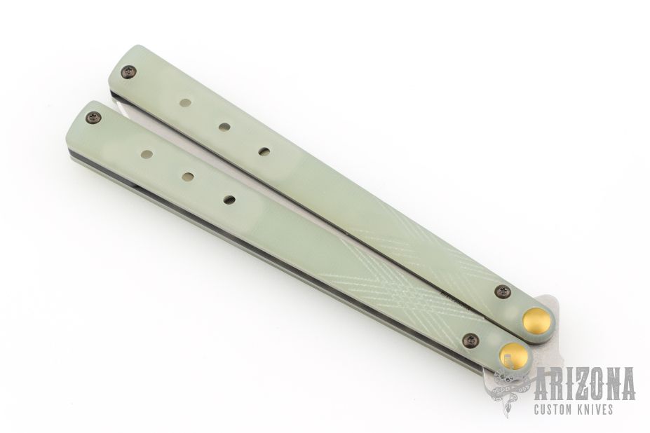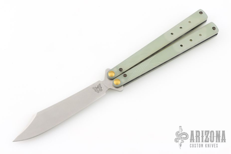 A high-performance butterfly knife with a focus on flipping, available in two highly customizable variants that pay homage to Benchmade's roots with a return to our Bali-Song's classic form and added bonus features. Optimized for expert flippers with latchless G10 handles and a CPM-S30V Scimitar blade, fine-tune Necron's balance and speed with adjustable tungsten weights and extendable handles for your perfect flip and desired feel. Finished off with a hollow diamond texture found on the safe handle to give the user a tactile indication between the safe and bite handles.