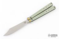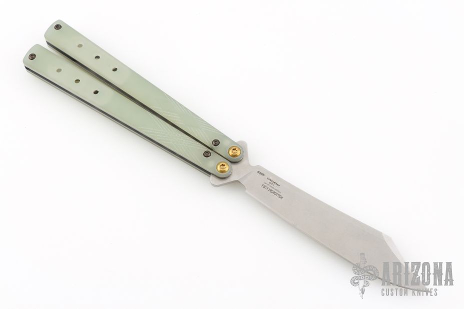 Back to Benchmade's roots, again, the 99 Necron has that classic look but with something hidden inside. What everyone wants nowadays - latch-less, with great balance and user-adjustability at just about every corner. The Necron has it in spades. The handle features removable tungsten weights and handle extensions, with the Jade G10 being somewhat see-through, allowing you to easily check and always admire your creation. The scimitar blade shape is one of our favorites and definitely at home with this design.