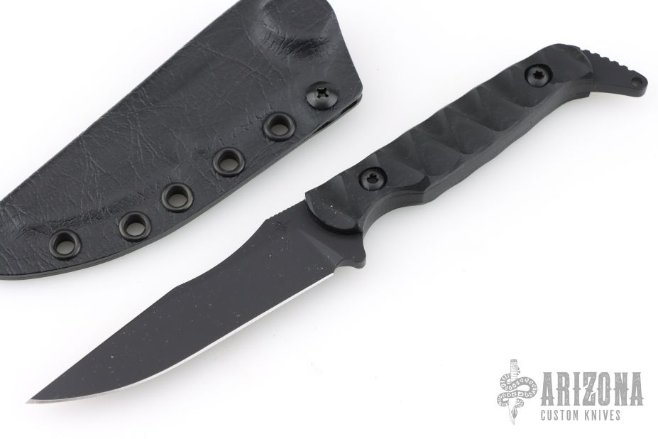 Its sleek profile allows for an extremely lethal tip with a 27-degree polished edge to finish it off. The handle is Toor Knives signature charcoal poly impregnated wood designed to last a lifetime finished with our alternating flute texture pattern to add all the grip you need in amphibious environments.