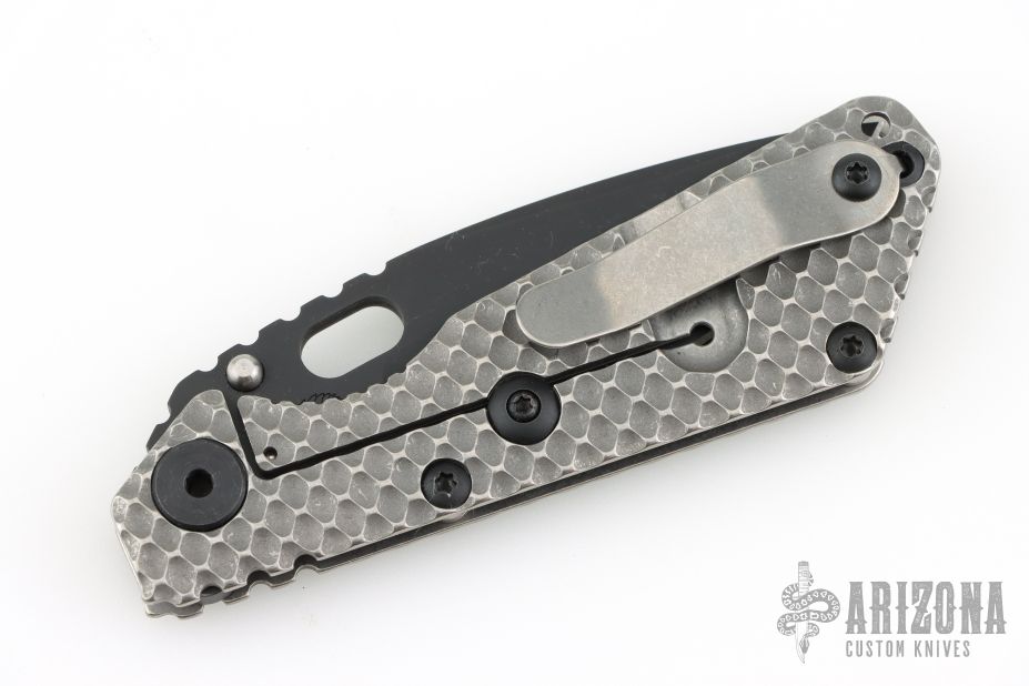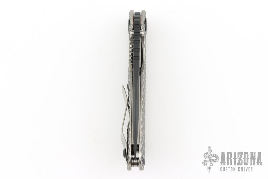 His knife line grew over the following years to include different varieties of fixed blades, all distinctive and many with specialized uses. But constant in all of them was a disregard for convention, and a desire to try new ideas. An example of this was the Ajax – it featured a very wide blade surface clearly designed to inflict damage. It drew on the weapons carried by Roman legionnaires, yet was modern and usable in the 21stCentury battlefield. Mick also worked on his technical skills, always striving to become better at the physical craft. At the 2002 Blade Show, a group of the best tactical knifemakers in the country decided to compete with each other to produce the most innovative and interesting fixed “battle blade” at the show. Mick’s entry, an incredible integral knife made out of ½” titanium stock with a zippered composite blade, gorgeous handles, and integral guard was the unanimous winner, and effectively retired the competition.