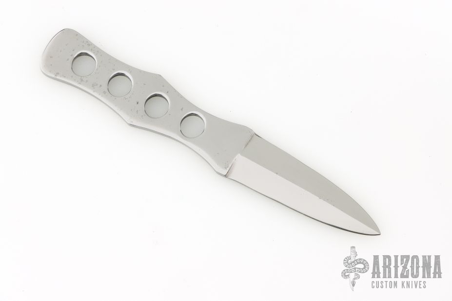 This dagger by Don Karlin features a satin finished double edged blade with .124" blade stock and .858" blade depth, full tang construction. Has a couple light scratches, otherwise good condition.