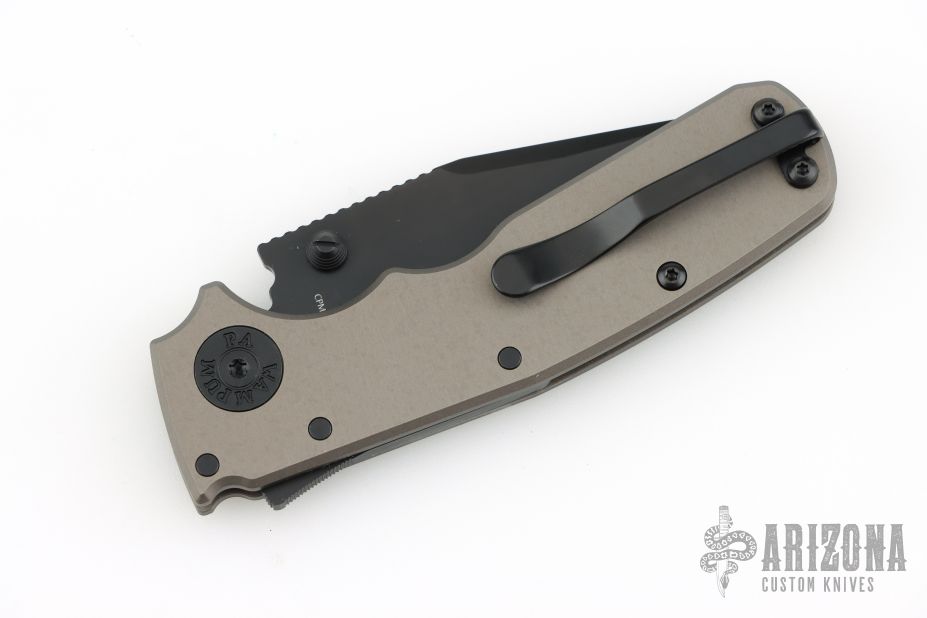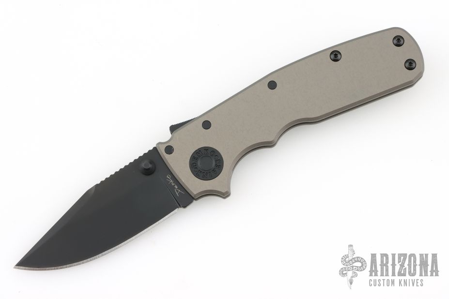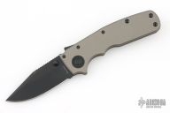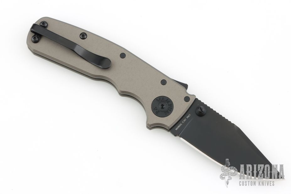 The Shark Cub by Demko Knives features the impressive Shark Lock and an even more impressive price point. The Shark Lock mechanism is situated on the spine of the knife and operated with a ramp-like ‘fin’, allowing you to flip the blade open and closed at will. It's probably the best thing about this knife and design, how quickly it can be deployed and ready for action. It acts as a blade launcher and a little wrist action is all it needs. This one has a black DLC blade and smooth Artillery Grey Aluminum handle. Comes in original packaging. Excellent condition.